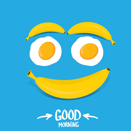おはよう面白い概念ベクトルの背景をベクトルします おはよう笑顔バナナから作られ 卵の目玉焼きのイラスト素材 ベクタ Image