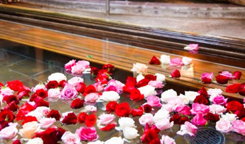 花すみか女性露天風呂 はな露天 一例 夜はバラの花が 朝はデンファレが浮かぶ Picture Of Koubaitei Kotohira Cho Tripadvisor