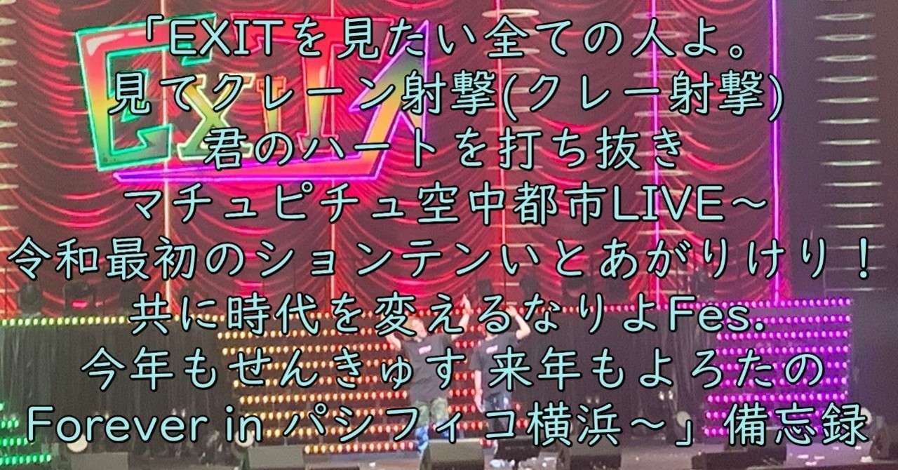 Exitを見たい全ての人よ 見てクレーン射撃 君のハートを打ち抜きマチュピチュ空中都市live 令和最初のションテンいとあがりけり 共に時代を変えるなりよfes 今年もせんきゅす 来 Chan C Hanagumi Fukui Note