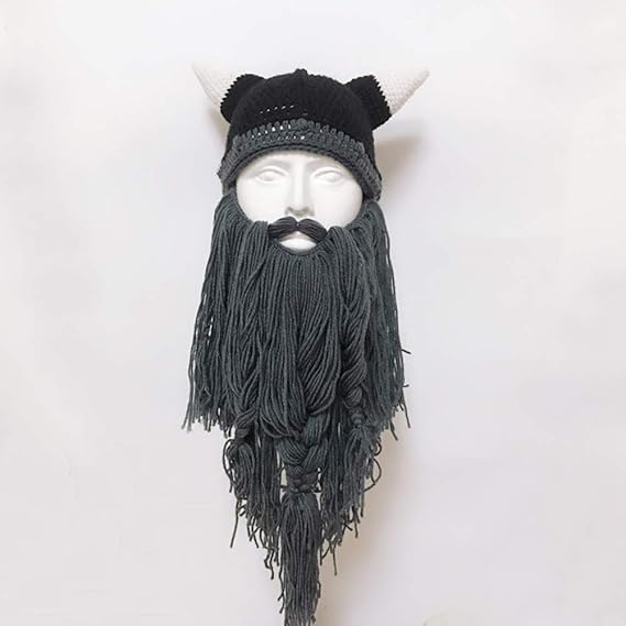 Amazon Co Jp Achicoo 帽子 ニットキャップ ニット帽子 ハロウィン コスプレ 男性 ニット バイキングひげ ホーン帽子 スキー マスクキャップ 冬 暖かい ユニセックス 面白い クレイジー グレー 服 ファッション小物