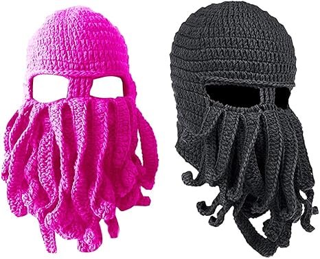 Amazon 2個 ニット帽 タコの形 ひげ帽子 防風 女性 男性 面白いマスク コスプレ パーティー コスプレ 仮装 通販
